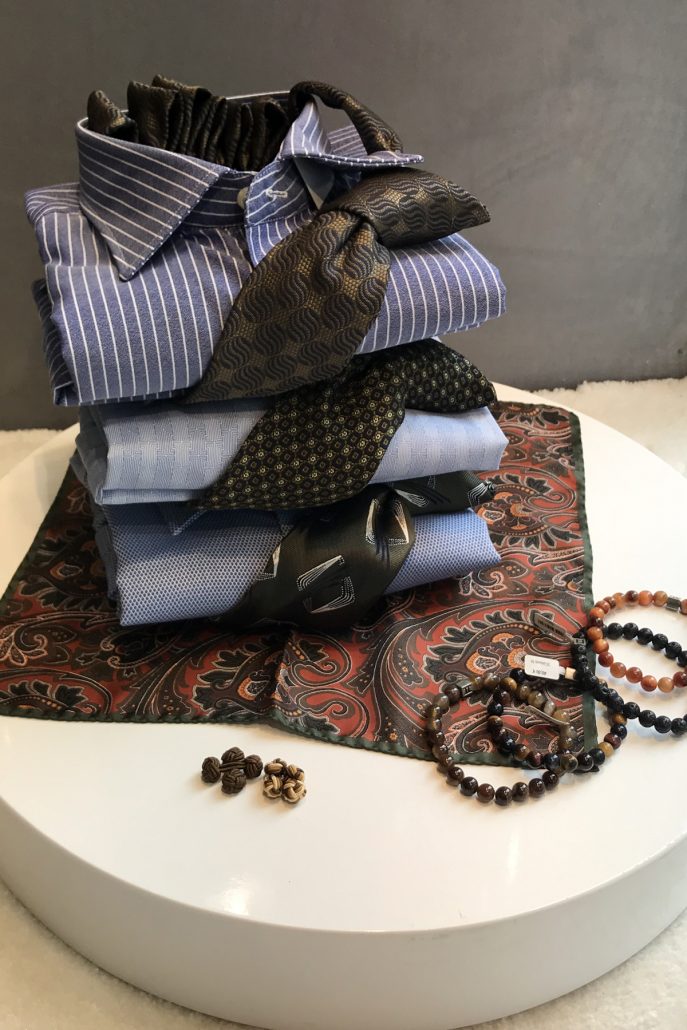 Chemise 100% coton « By Alazio » 90€ Cravate 100% soie « Altea » 70€-90€ Pochette 100% soie « Altea » 50€