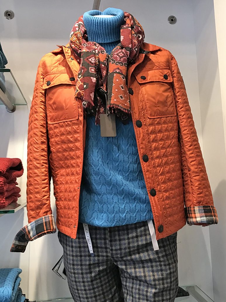 Blouson « JB » 320€ Pull 100% cashmere « Silvio’s » 350€ Echarpe 100% laine « Altea » 120€ Pantalon 100% laine « TZ » 195€